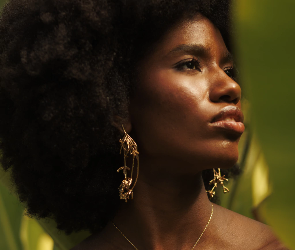 O Brinco Energia foi criado a partir de um galho alongado, colhido em uma área preservada com carinho pelo pai da nossa diretora criativa, Fernanda Dubeux. Sua estrutura vertical e texturizada foi mantida como na floresta, sem moldes. Recebeu o nome Energia por evocar o pulso vibrante da natureza em movimento. Uma peça viva e cheia de ritmo.
