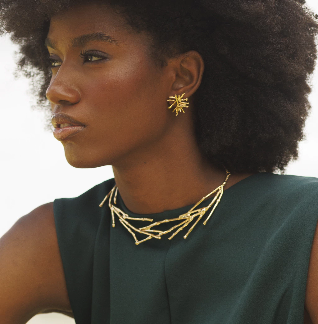 O Colar Conexão celebra os elos invisíveis que nos unem à natureza e uns aos outros. Seus ramos entrelaçados evocam raízes que se encontram debaixo da terra, em silêncio, firmando a vida em comum. Uma peça que expressa unidade, ancestralidade e afeto. Criado a partir de um elemento real, colhido em uma área preservada com carinho pelo pai da nossa diretora criativa, Fernanda Dubeux. Para quem carrega na pele o desejo de estar sempre em vínculo com o que importa.